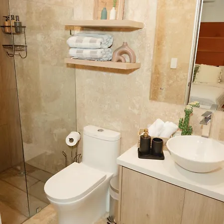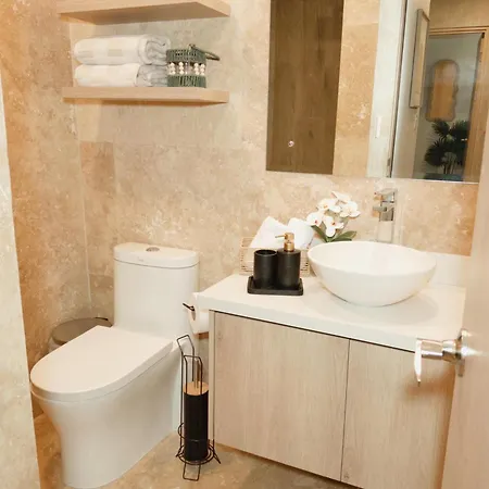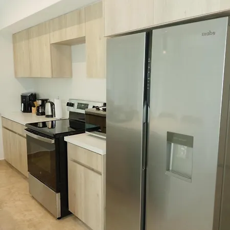 Luxury Suite Torres Del Mar Jacoの設備の整った台所の便利さを楽しみ、自家製の食事を用意できます。 最寄りのバス停El Estadioすぐ近くです。